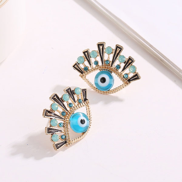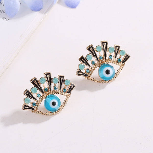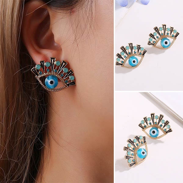 Eye-shaped design,inlaid with rhinestone details,this pair of stud earrings can embellish