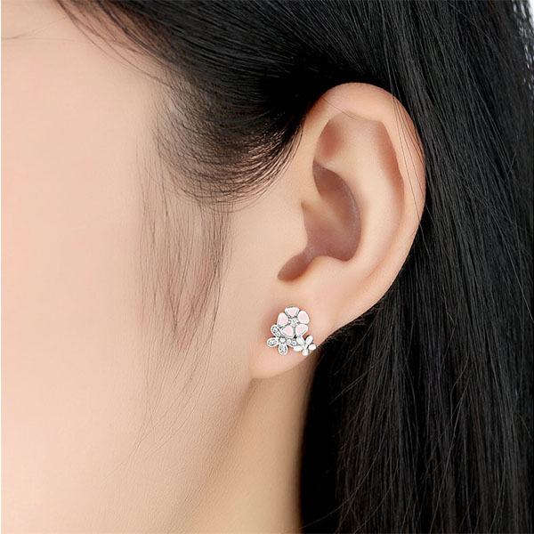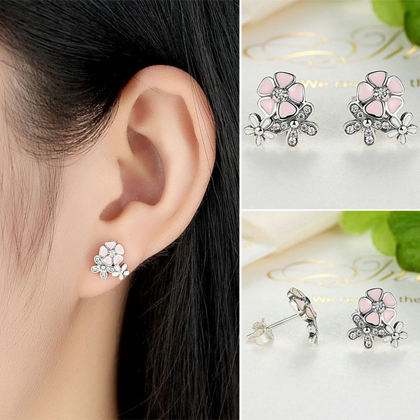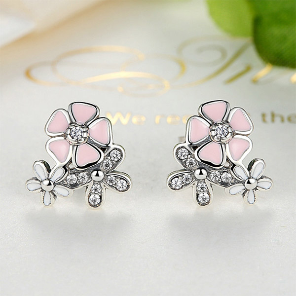 Fashion Rhinestone Inlaid Flower Shaped Stud Earrings
