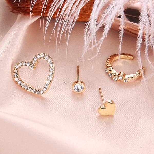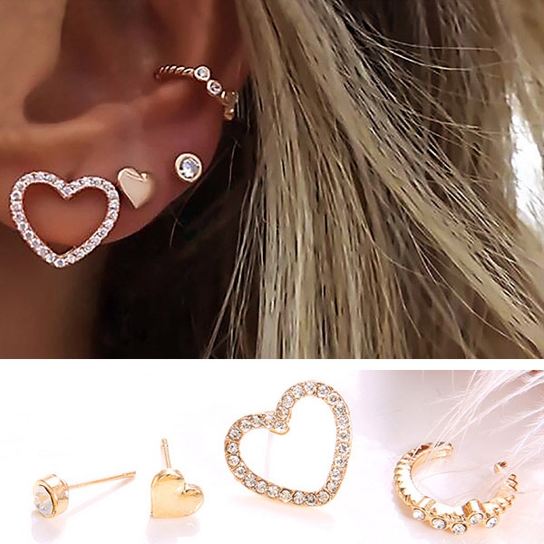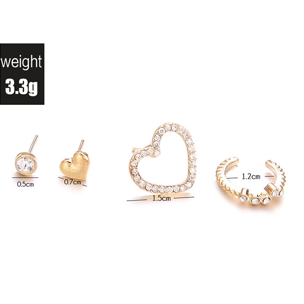 Fashion Rhinestone Inlaid Heart Shaped Stud Earring Set 4 pcs/Set