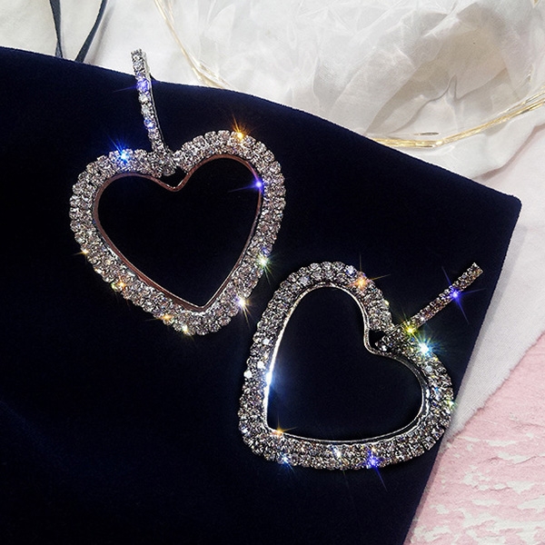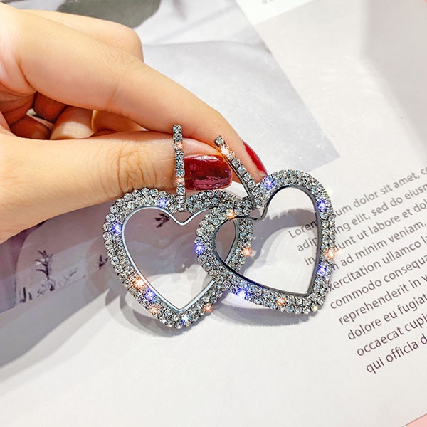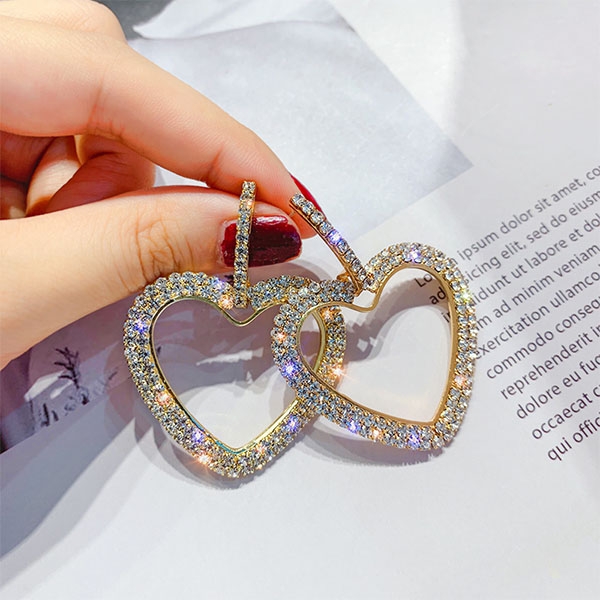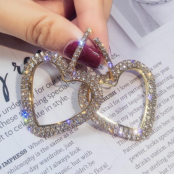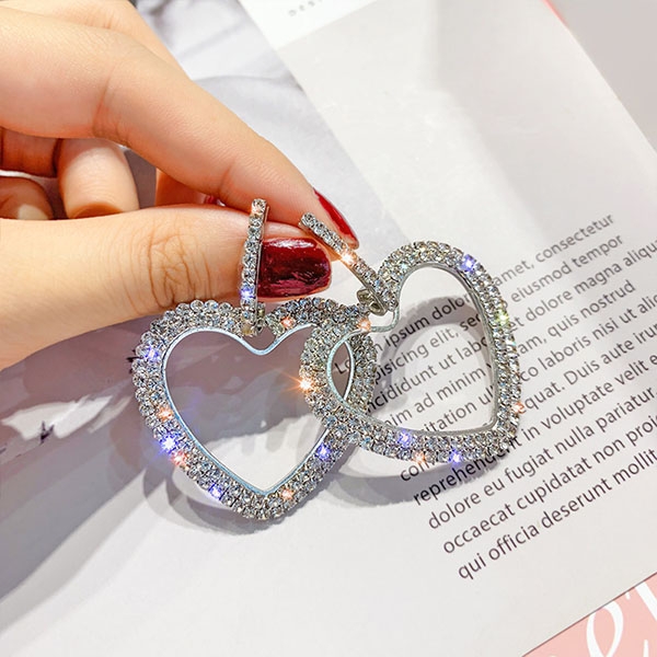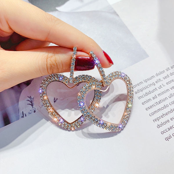 Fashion Rhinestone Inlaid Heart Shaped Stud Earrings