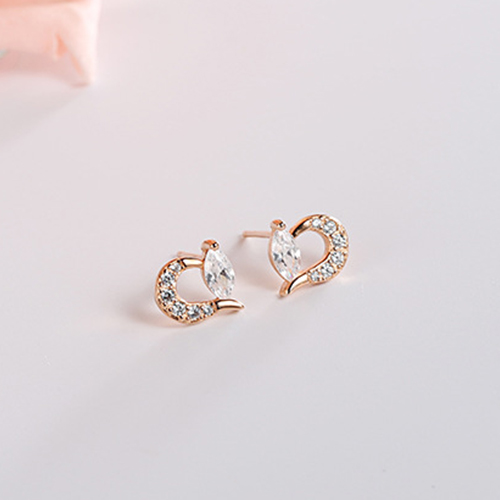 Fashion Rhinestone Inlaid Heart Stud Earrings