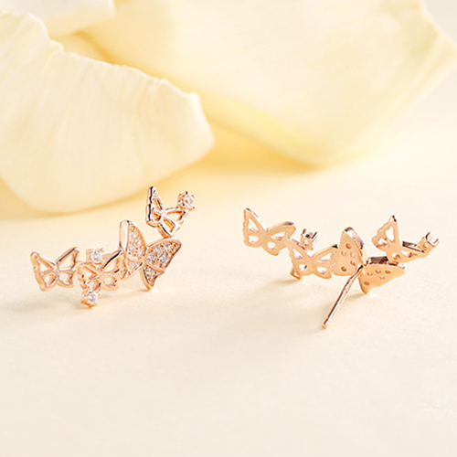 Fashion Rhinestone Inlaid Hollow Out Butterfly Stud Earrings