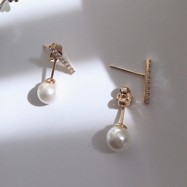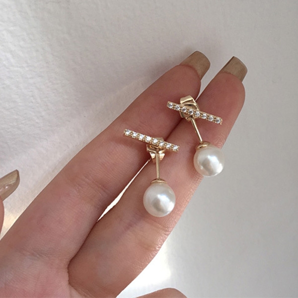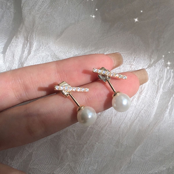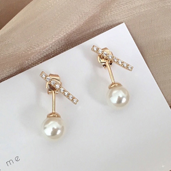 Fashion Rhinestone Inlaid Imitation Pearl Pendant Stud Earrings