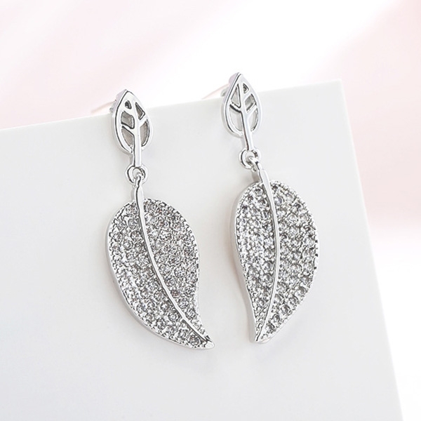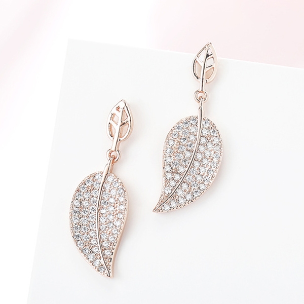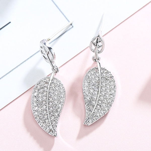 Fashion Rhinestone Inlaid Leaf Shaped Stud Earrings