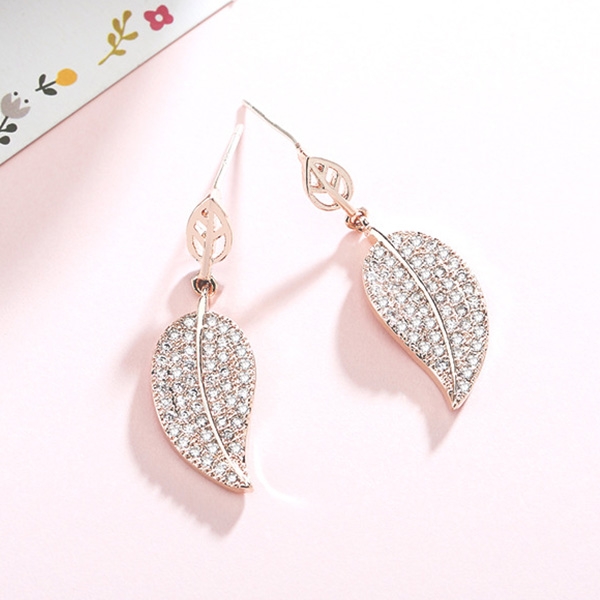 Leaf shaped design makes it look so fresh and chic. Inlaid with rhinestone details,