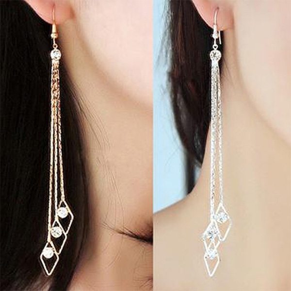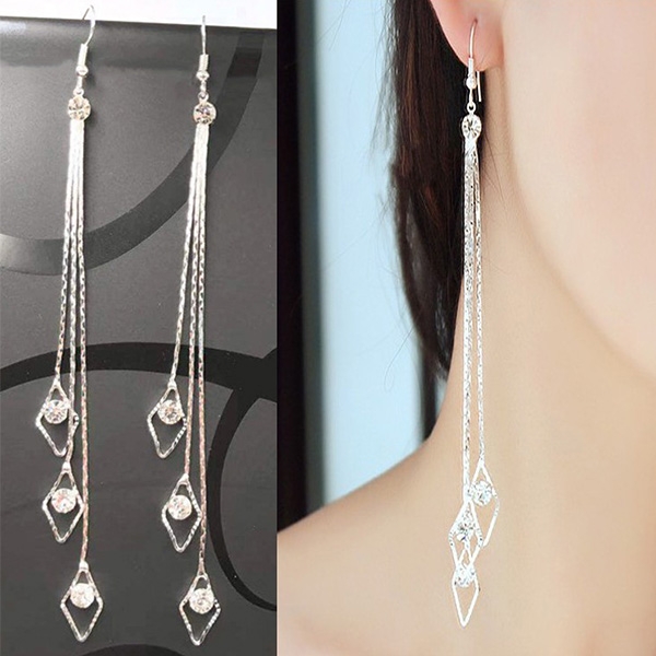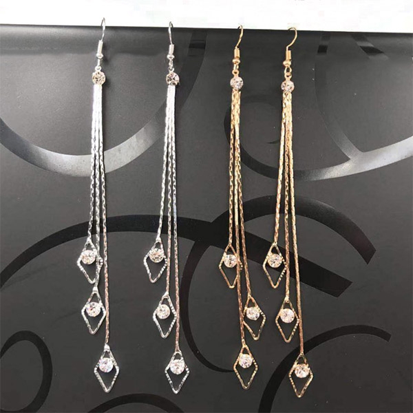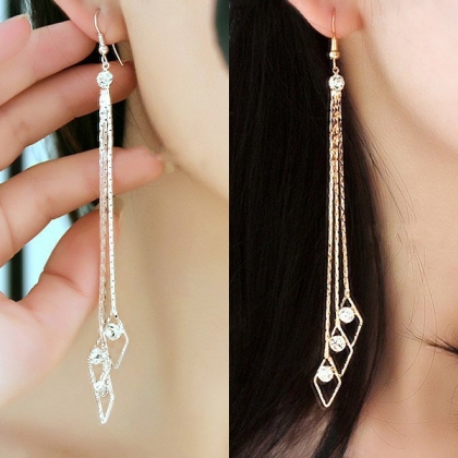 Fashion Rhinestone Inlaid Long Tassel Pendant Earrings