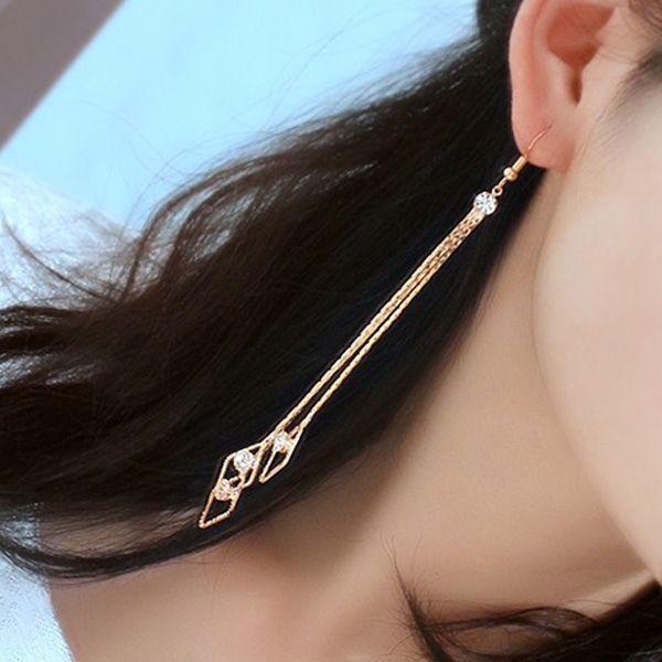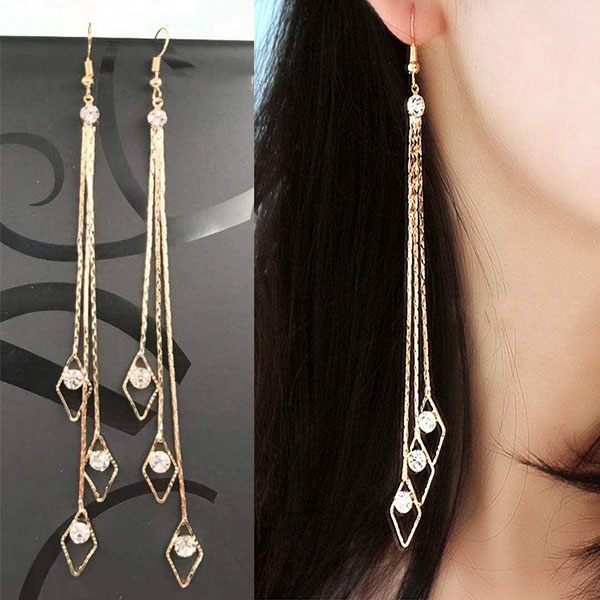 Long tassel design,decorated with rhinestone details,this pair of earrings is a perfect