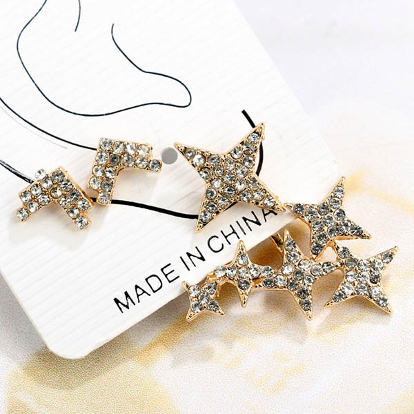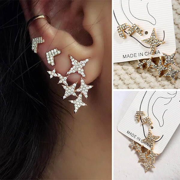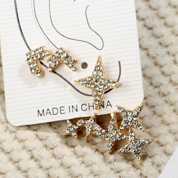 Fashion Rhinestone Inlaid Pentagram Shaped Stud Earring Set 3 pcs/Set