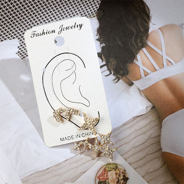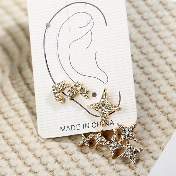 try these stud earrings. Pentagram shaped design,decorated with rhinestone details,