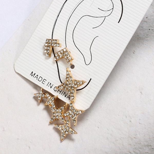 Fashion Rhinestone Inlaid Pentagram Shaped Stud Earrings