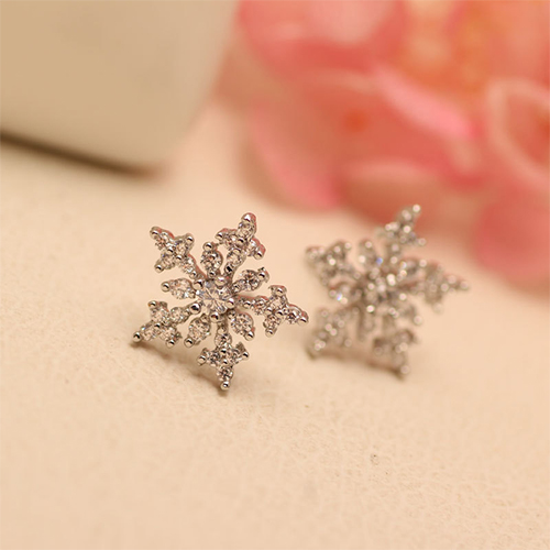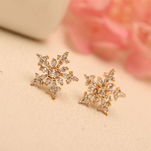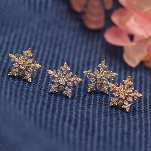 Fashion Rhinestone Inlaid Snowflake Shaped Stud Earrings