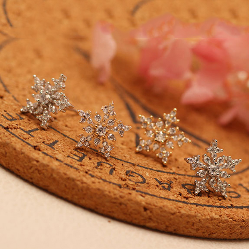 Infuse a sense of glamour into your daily look through this pair of stud earrings. Snowflake shaped design,inlaid with rhinestone,dazzling and charming.