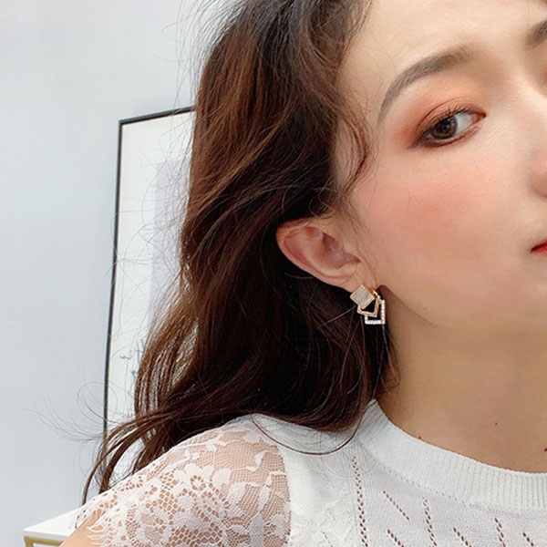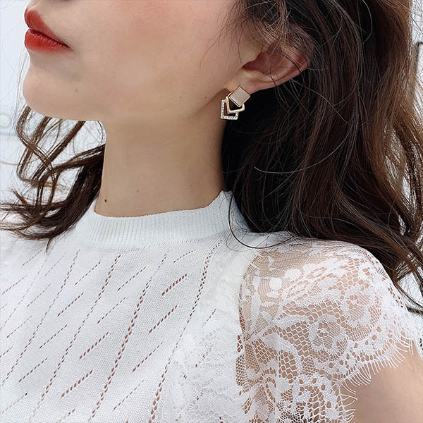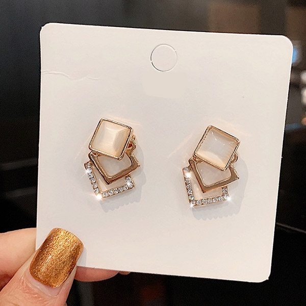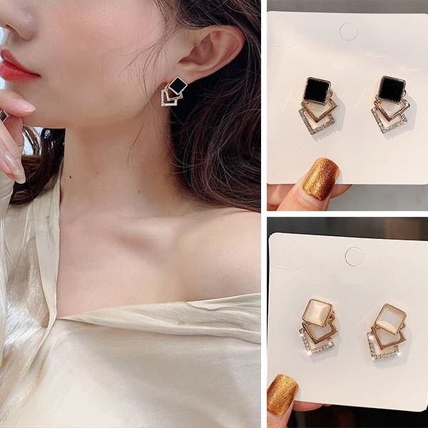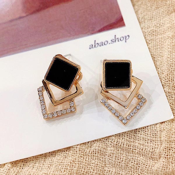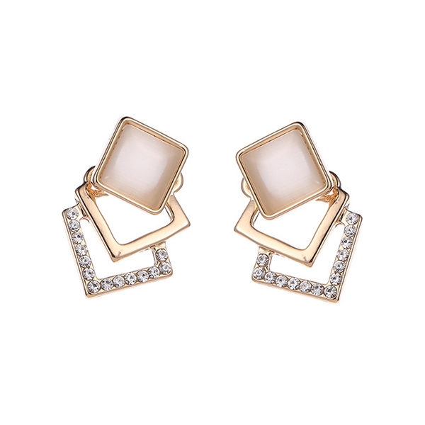 Fashion Rhinestone Inlaid Square Shape Stud Earrings