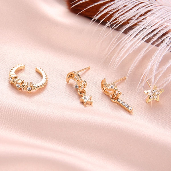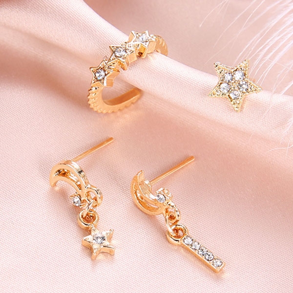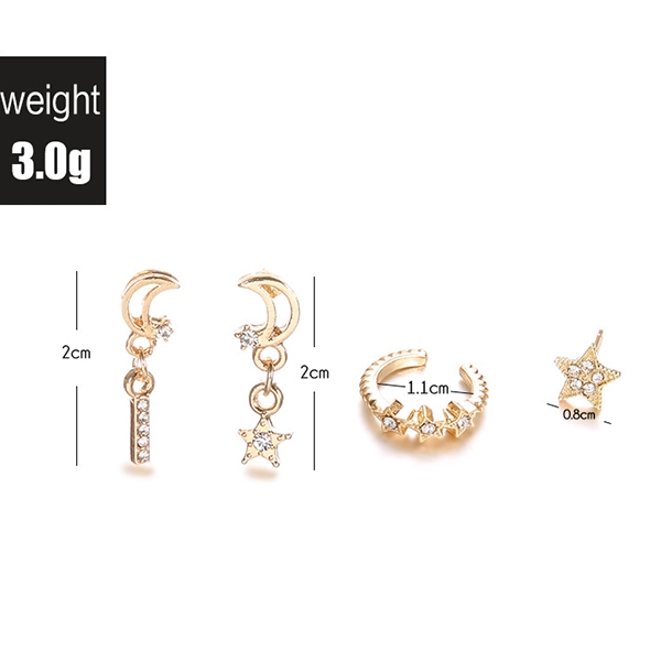 Fashion Rhinestone Inlaid Star & Crescent Shaped Stud Earring Set 4 pcs/Set