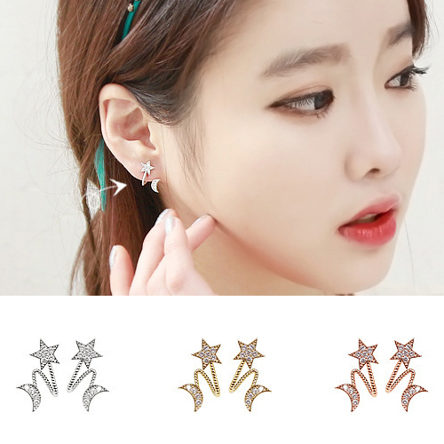 Fashion Rhinestone Inlaid Star Crescent Stud Earrings