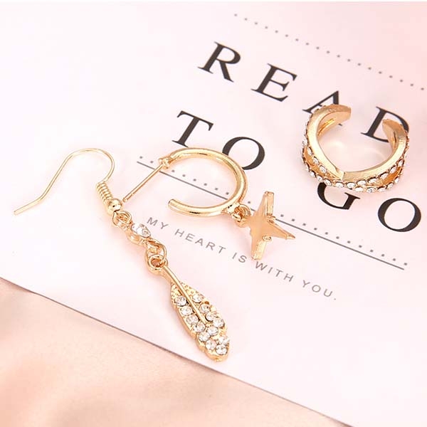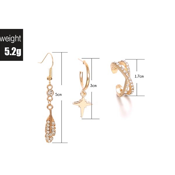 Fashion Rhinestone Inlaid Star Feather Pendant Earring Set 3 pcs/Set