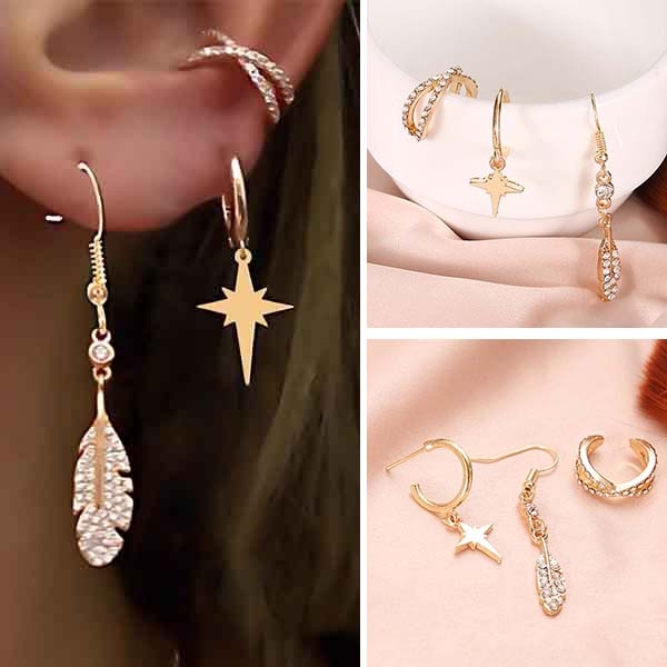 Elevate your look instantly with the help of this earring set. Consists of 3 pieces different earrings,
