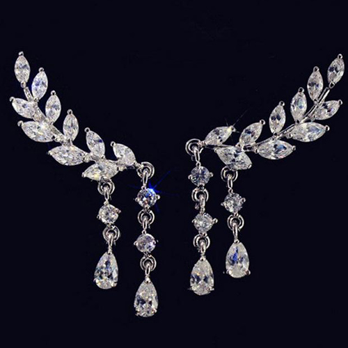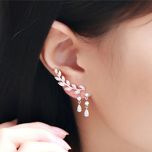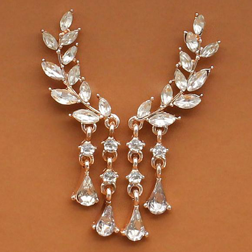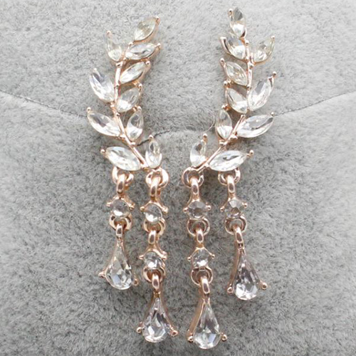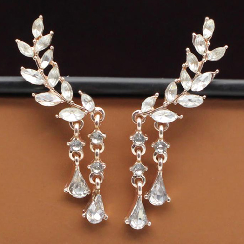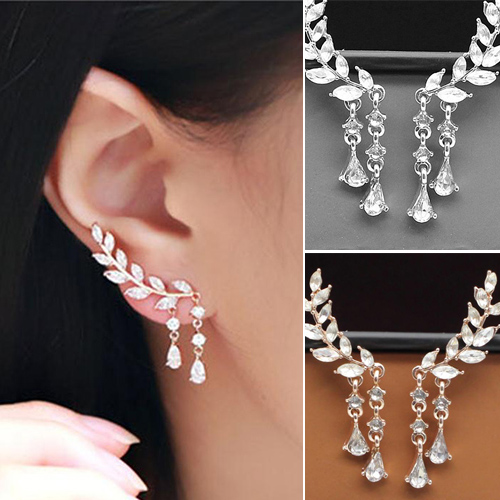 Fashion Rhinestone Leaf Shaped Tassel Earrings