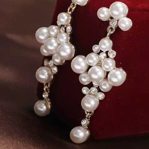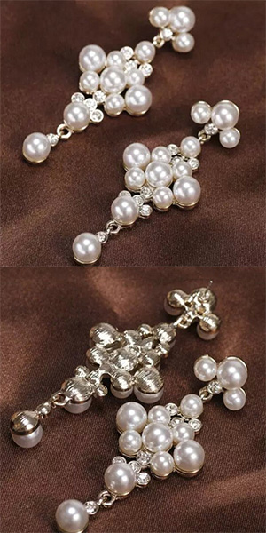 This pair of pearl earrings is a perfect additions for a delicate and eye-catching look.