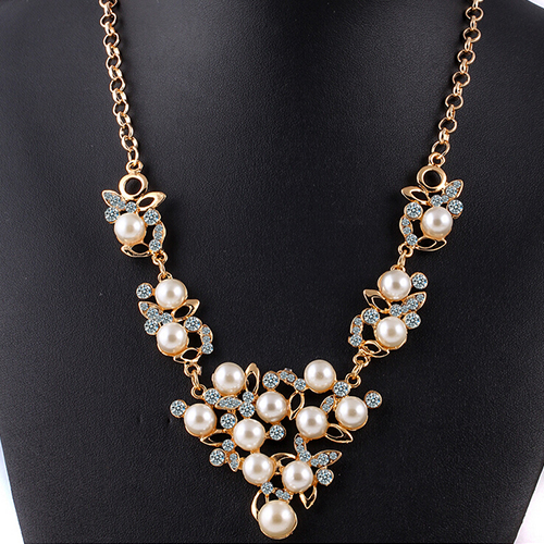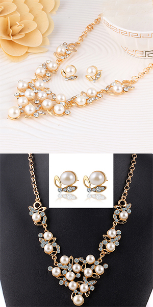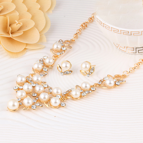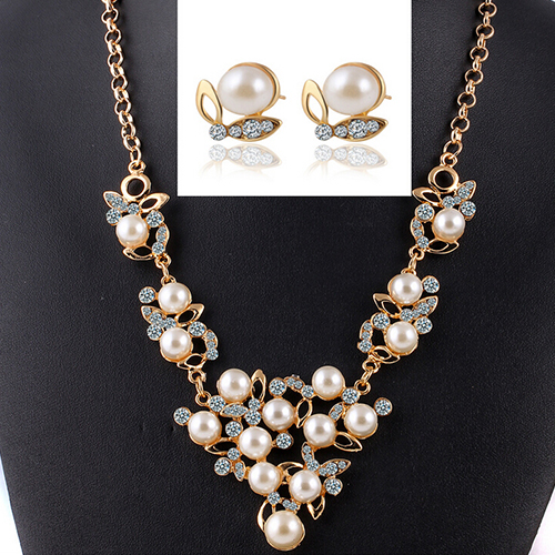 Fashion Rhinestone Pearl Necklace + Earring Set