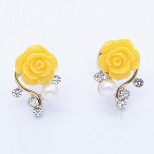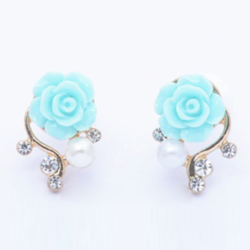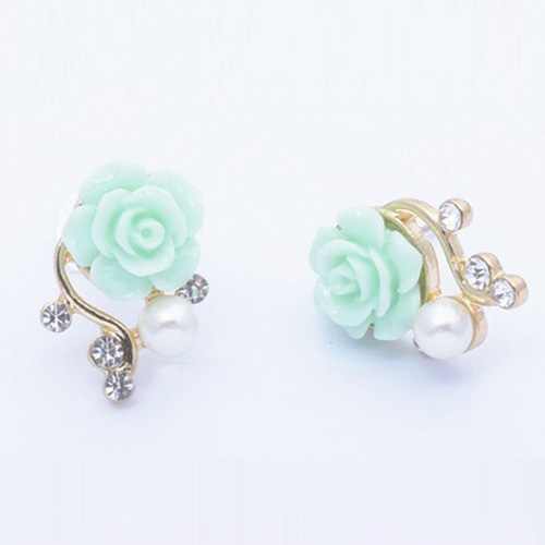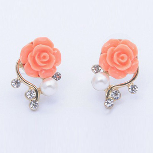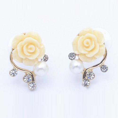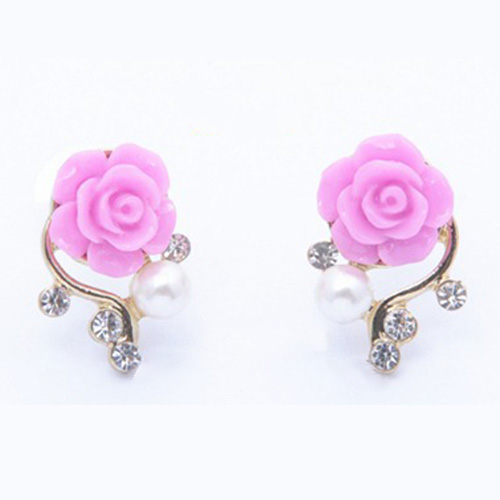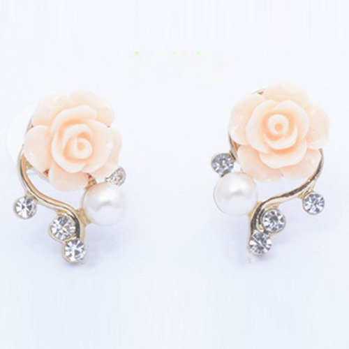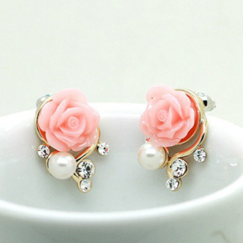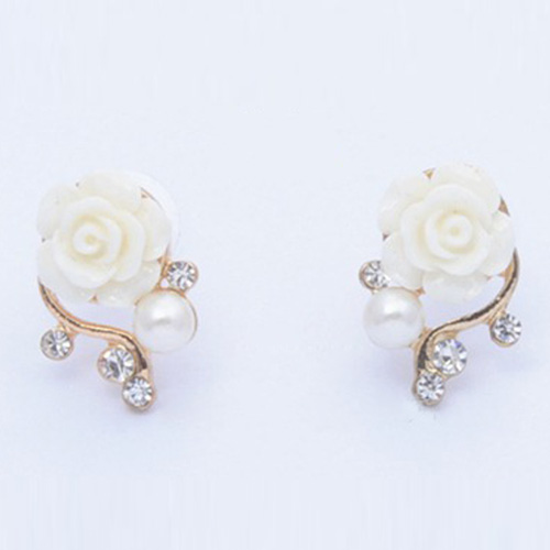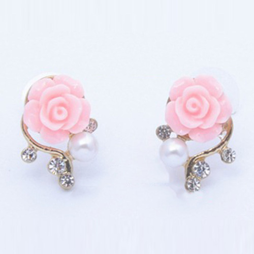 Fashion Rhinestone Pearl Rose-shaped Stud Earrings