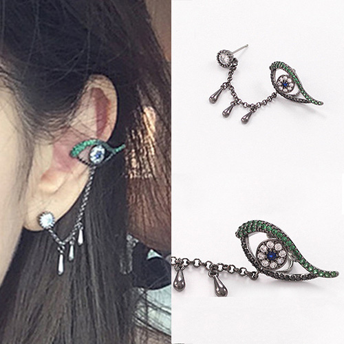 Fashion Rhinestone Water-drop Pendant Stud Earring