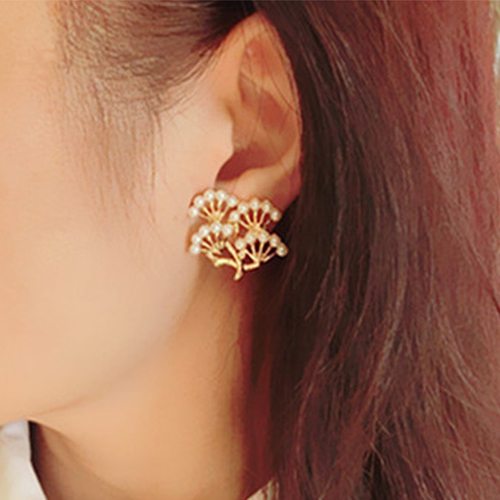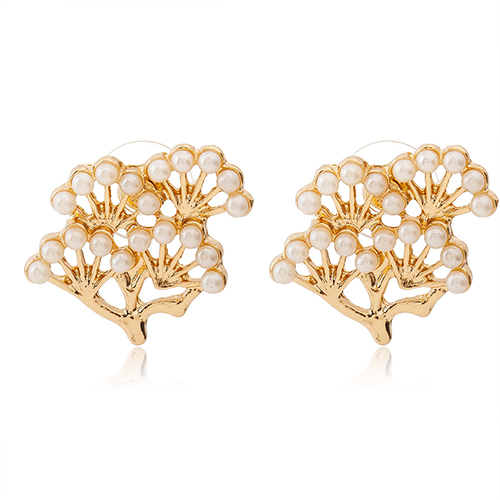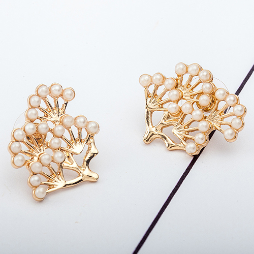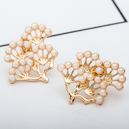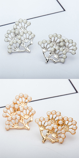 This pair of earring is exquisite fashion, it is decorated with tree shaped design and pearls.