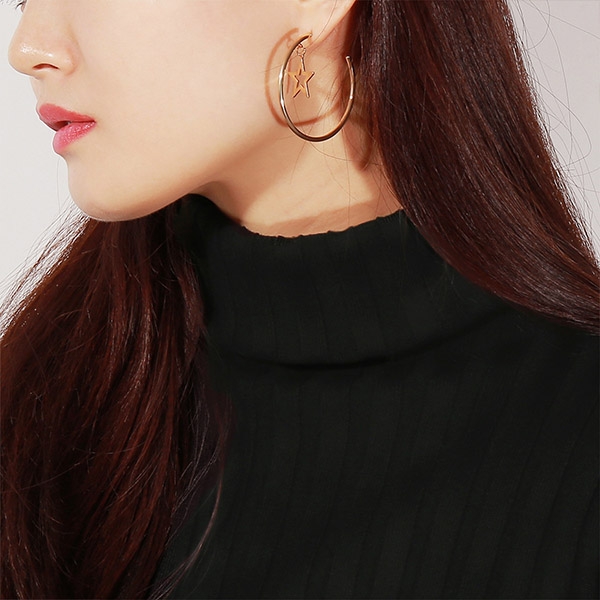 Complete a stylish and charming look with this pair of earrings. Circle shaped design,decorated with a star,