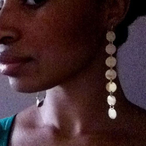 With several sequins pendant on this pair of long earrings, it looks not only fashionable
