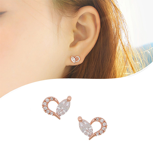 Fashion Style Rhinestone Heart-Shaped Stud Earrings