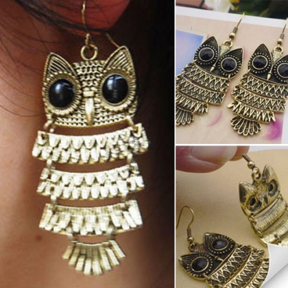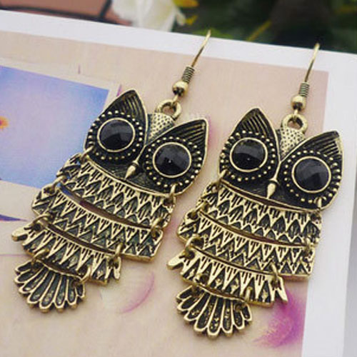 This pair of earrings is creatively crafted to owl shape and the eyes part of the owl is inlaid with