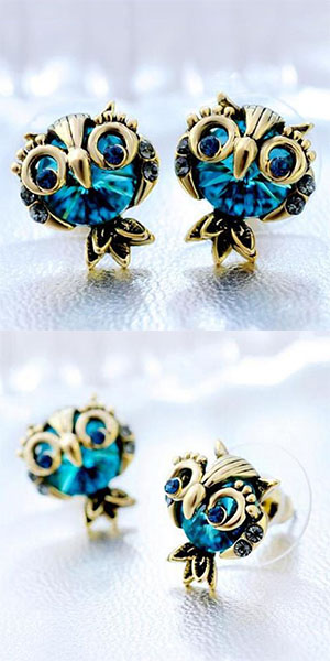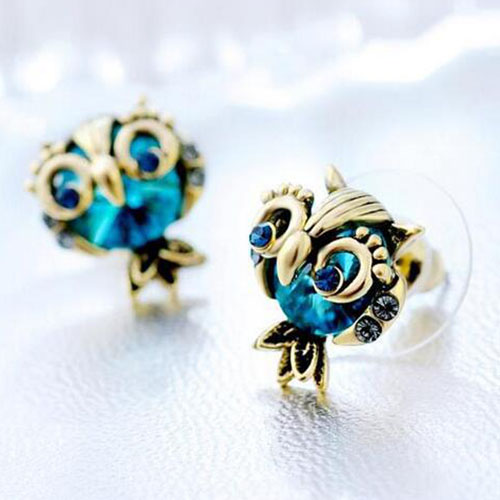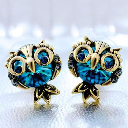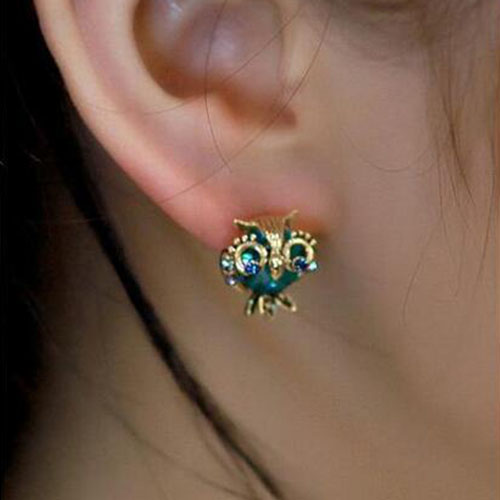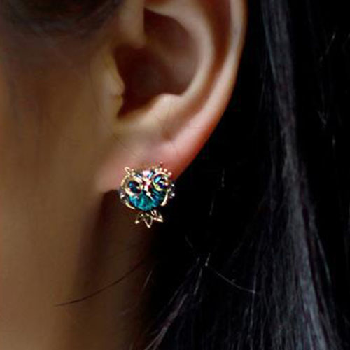 Fashion Style Rhinestone Owl-Shaped Stud Earrings