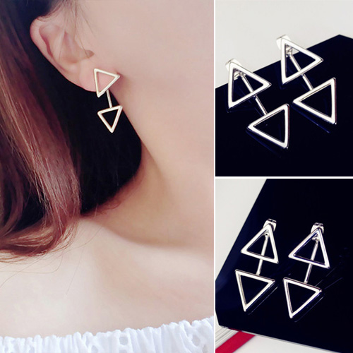 Fashion Triangle Shaped Front and Backear Stud Earring