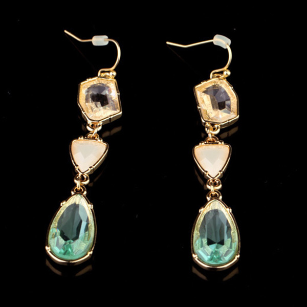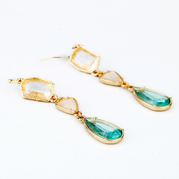 Finish a stylish and charming dress up with the help of this pair of earrings. The water-drop shaped rhinestone