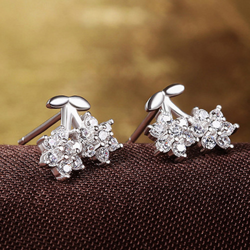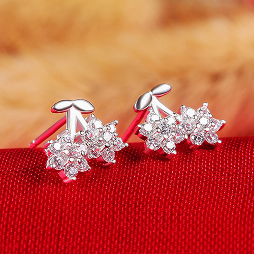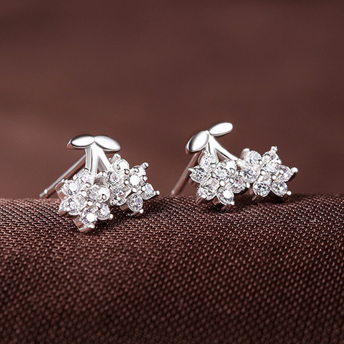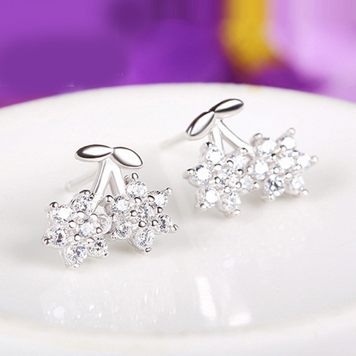 Fashion Zircon Cherry Flower Shaped Stud Earrring