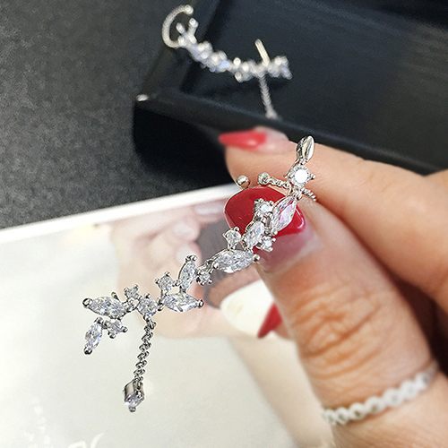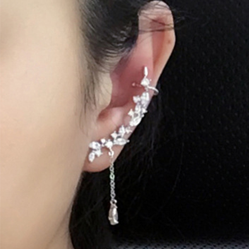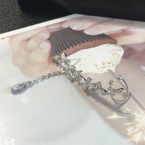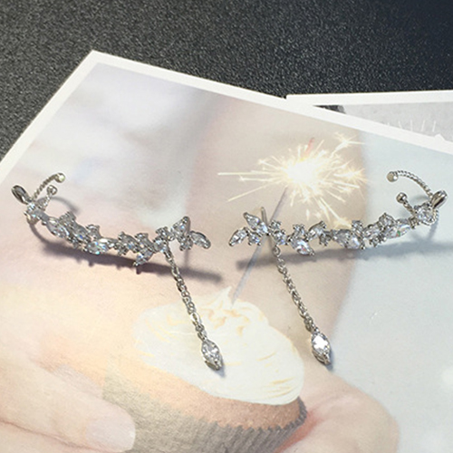Fashion Zircon Rhinestone Tassel Pendant Stud Earring Ear Clip
