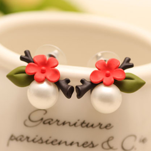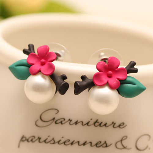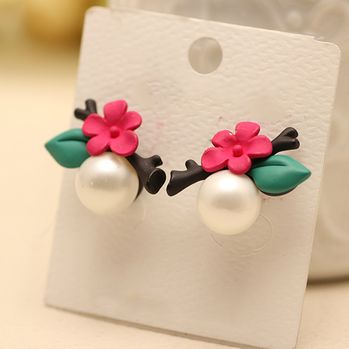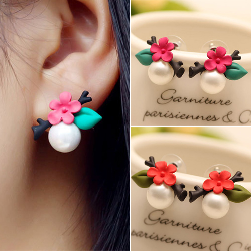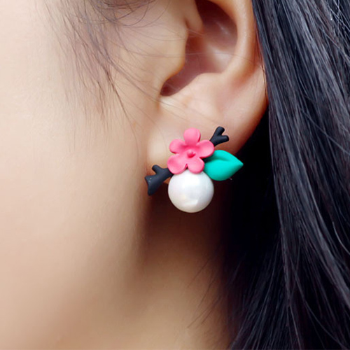 Fresh Style Flower Leaf Pearl Stud Earrings