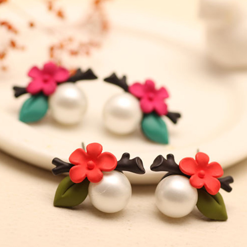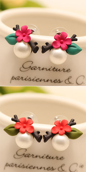 Embellish your fabulous style with these pearl stud earrings. Decorated with flower and leaf,