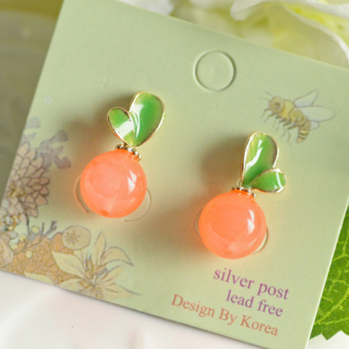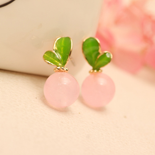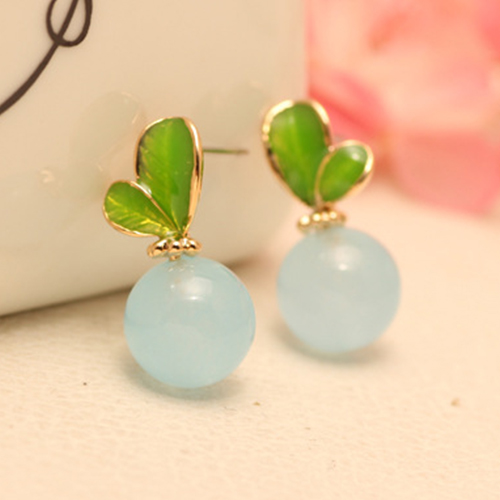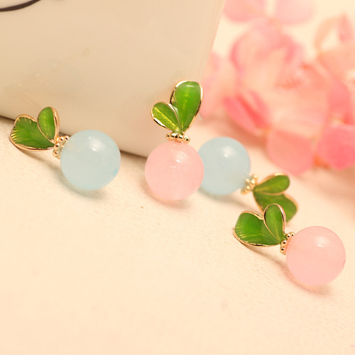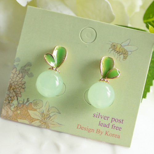 Fresh Style Green Leaves Colored Bead Stud Earrings