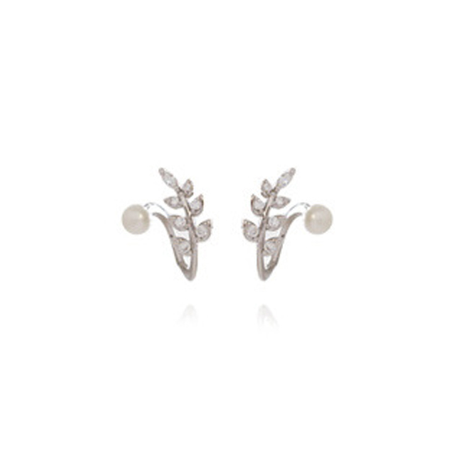 Fresh Style Rhinestone Leaf Pearl Stud Earrings