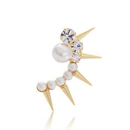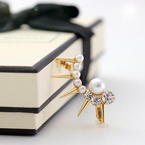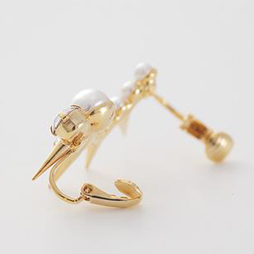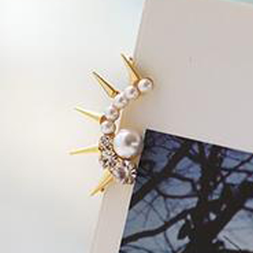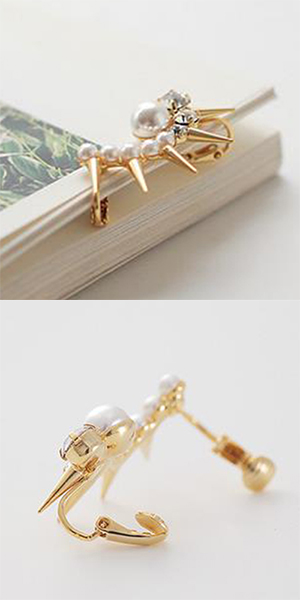 earrings is styled with rivet and in case of making it too monotonous, it also decorates with rhinestone.