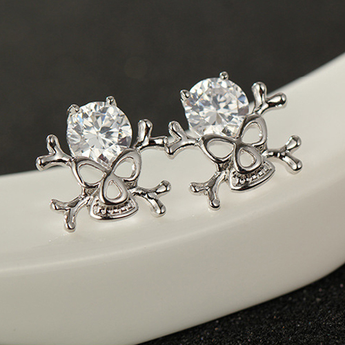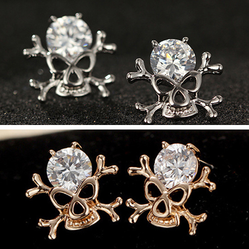 Convey your unique style with these stud earrings! Skull head shaped design,inlaid with rhinestone,retro
