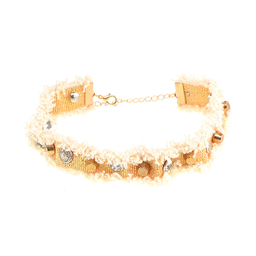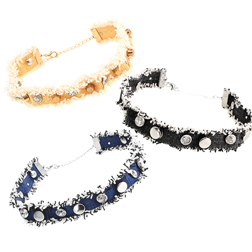 Show off your elegance with the undeniable beauty of the necklace. Decorated with rhinestone and rivets details