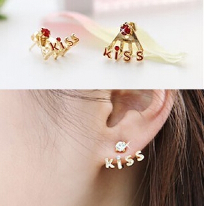 Red Cute Kiss Rhinestone Earrings