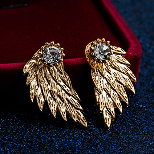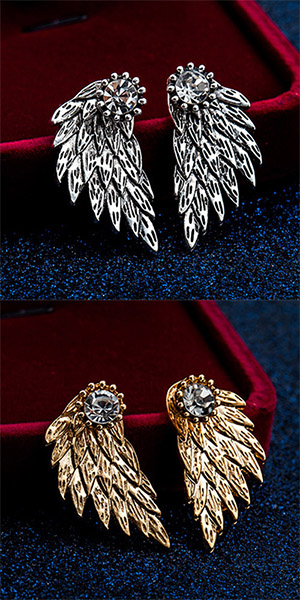 this pair of feather-shaped studs is stereoscopic and it looks vivid, the shine rhinestone