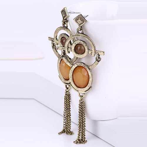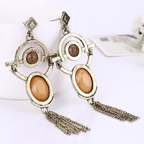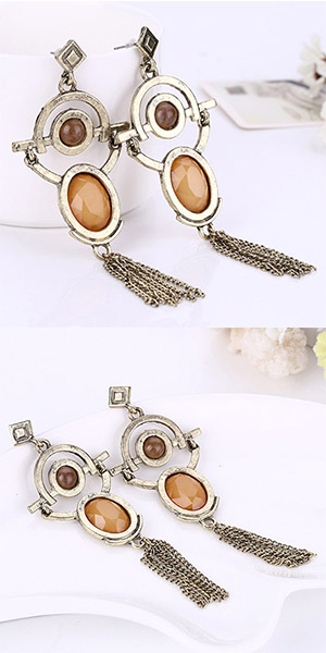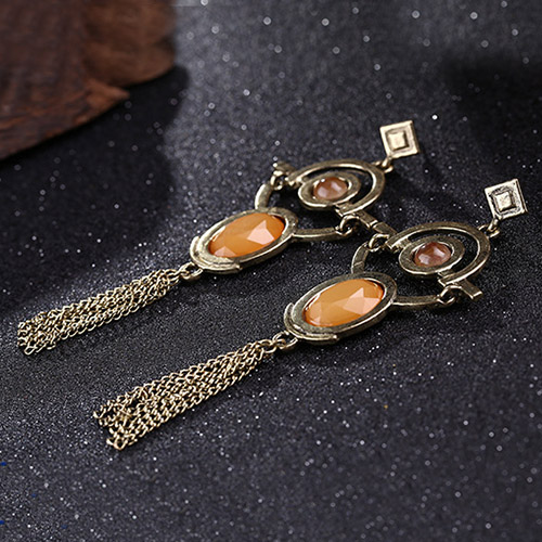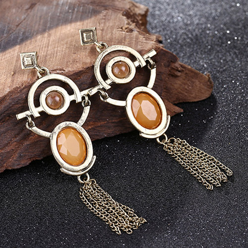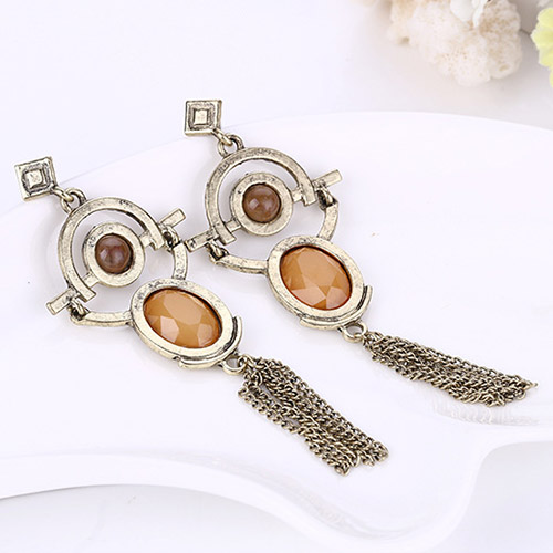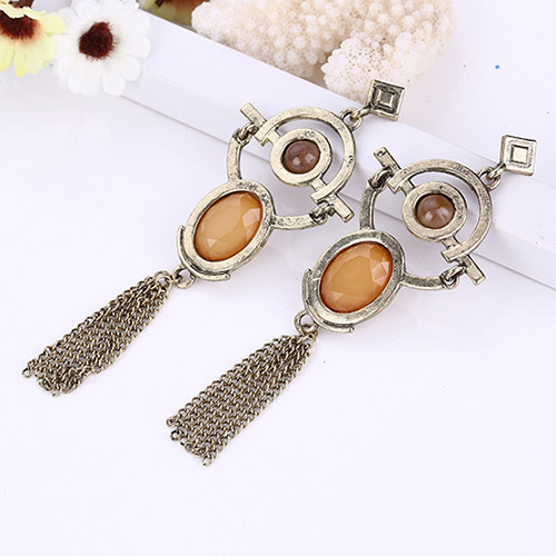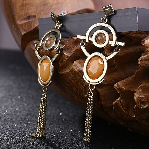 Retro Geometric Shaped Tassel Pendant Earring