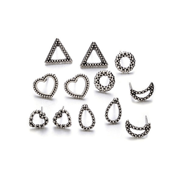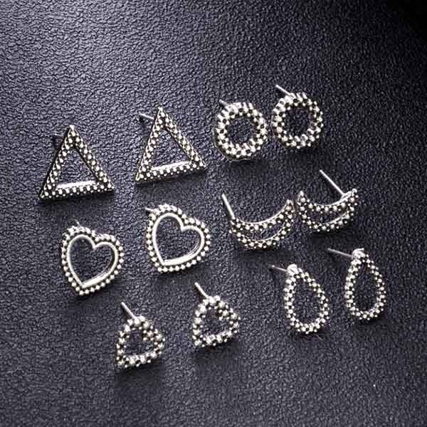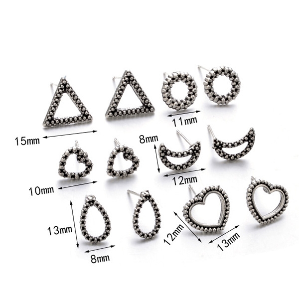 This stud earring set consists of 6 pairs of different shaped stud earrings like heart shaped,triangle shaped,