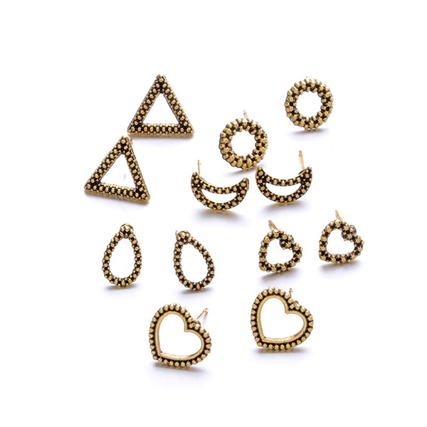 Retro Style Gold/Silver-tone Alloy Stud Earring Set 6 pair/Set