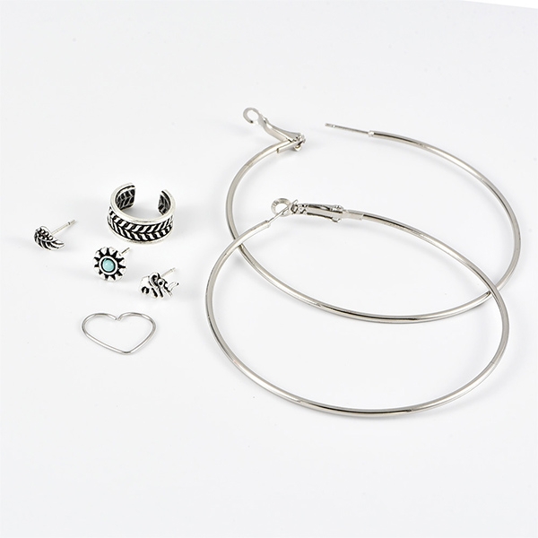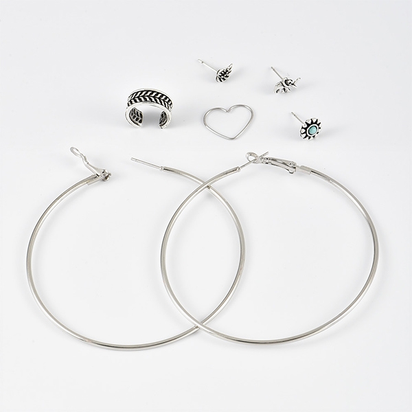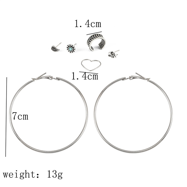 Retro Style Heart Circle Shaped Stud Earrings Set 7 pcs/Set