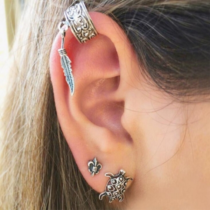 of 3 pieces stud earrings,the leaf and tortoise shaped design make it look so chic and unique.